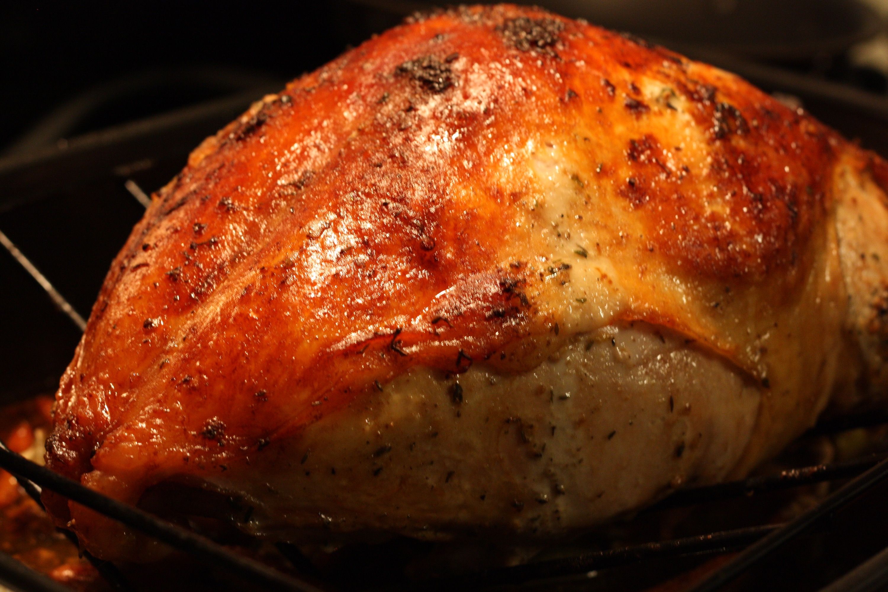 This year, even though I went to the in-laws, I could not resist being in the kitchen. So…I had to still throw down! Meat of choice was a turkey breast I slow roasted in the oven. The bird was brined for 24 hours and then taken out, patted dry, and seasoned to marinated for an additional 24 hours. Cavity filled with olive oil and the same seasoning, onions, celery, carrots, thyme, and a few other staples. The result = tender, juicy bird!